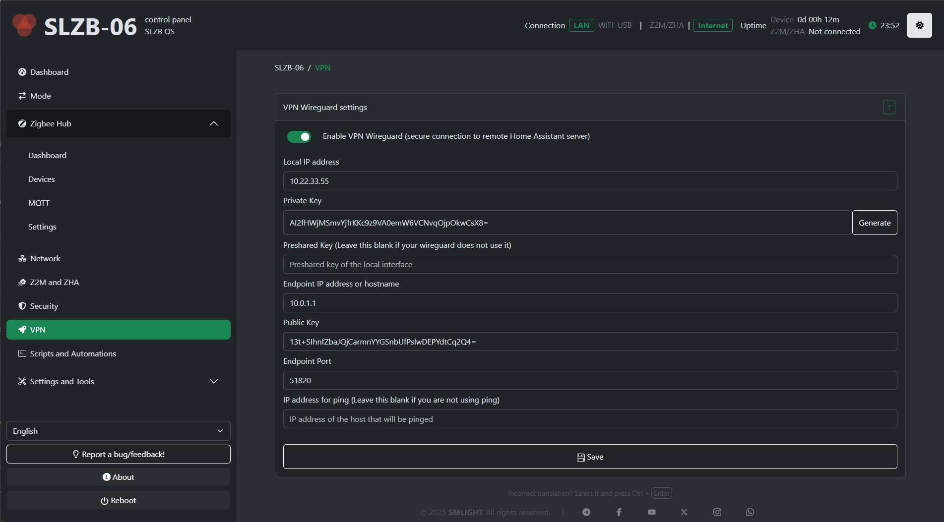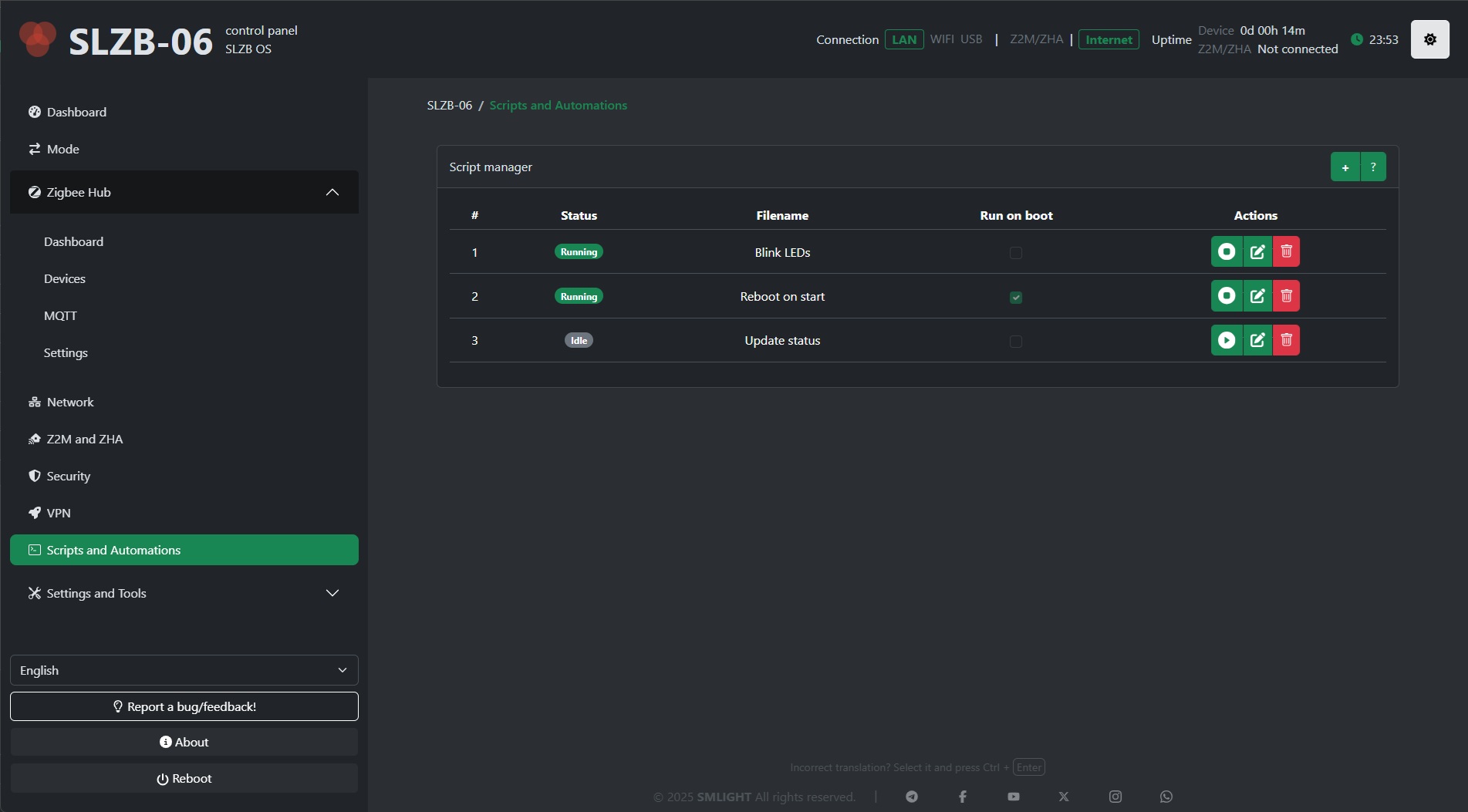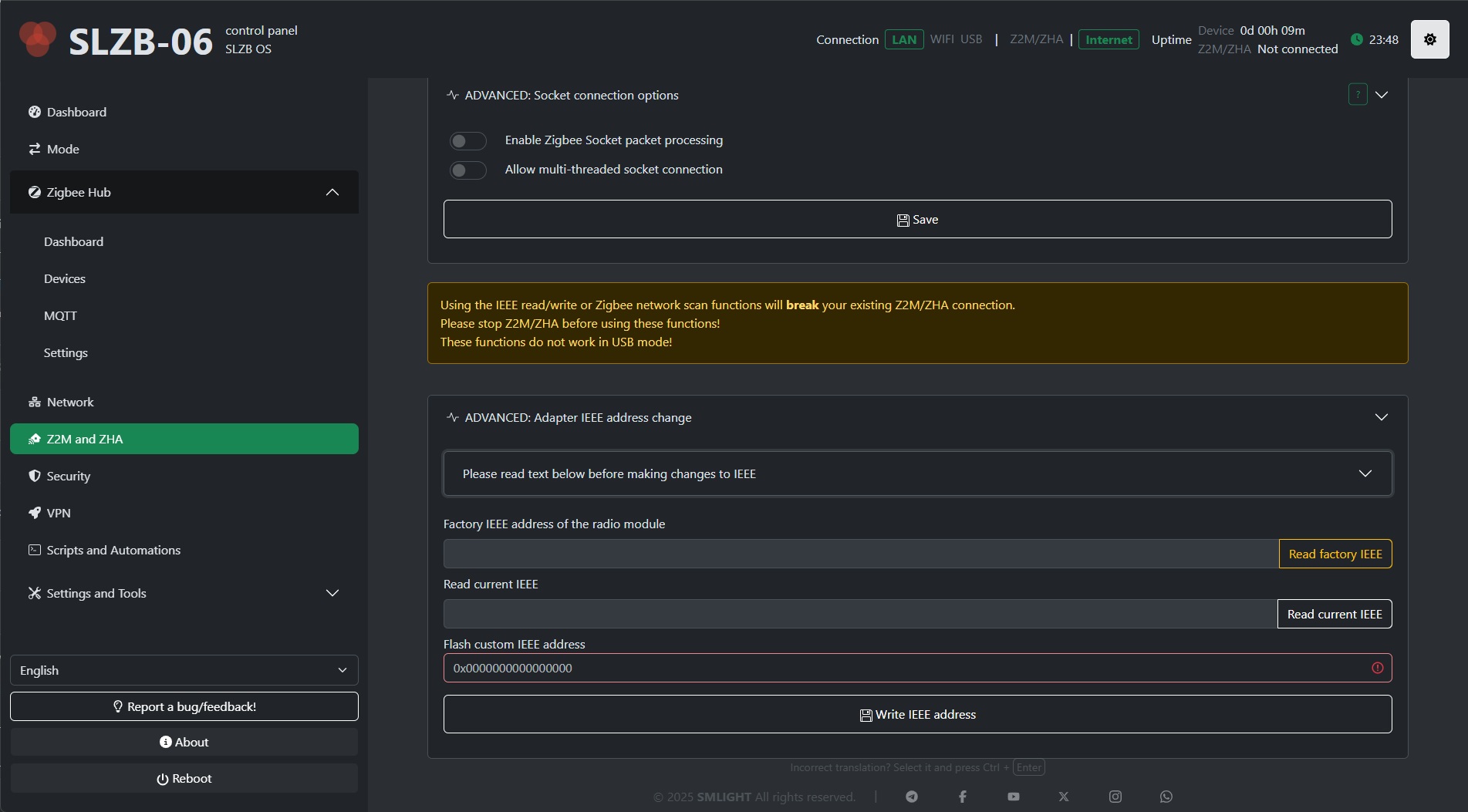 - Zigbee Hub Mode – direct control of Zigbee devices via built-in web interface (available only on TI-based models like SLZB-06, 06P7, 06P10).