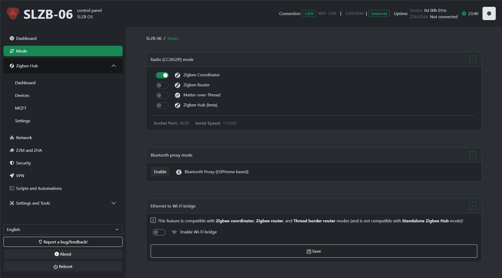 Switch Zigbee Coordinator or Router or Thread modes in 1 clickc slzb-os-mode