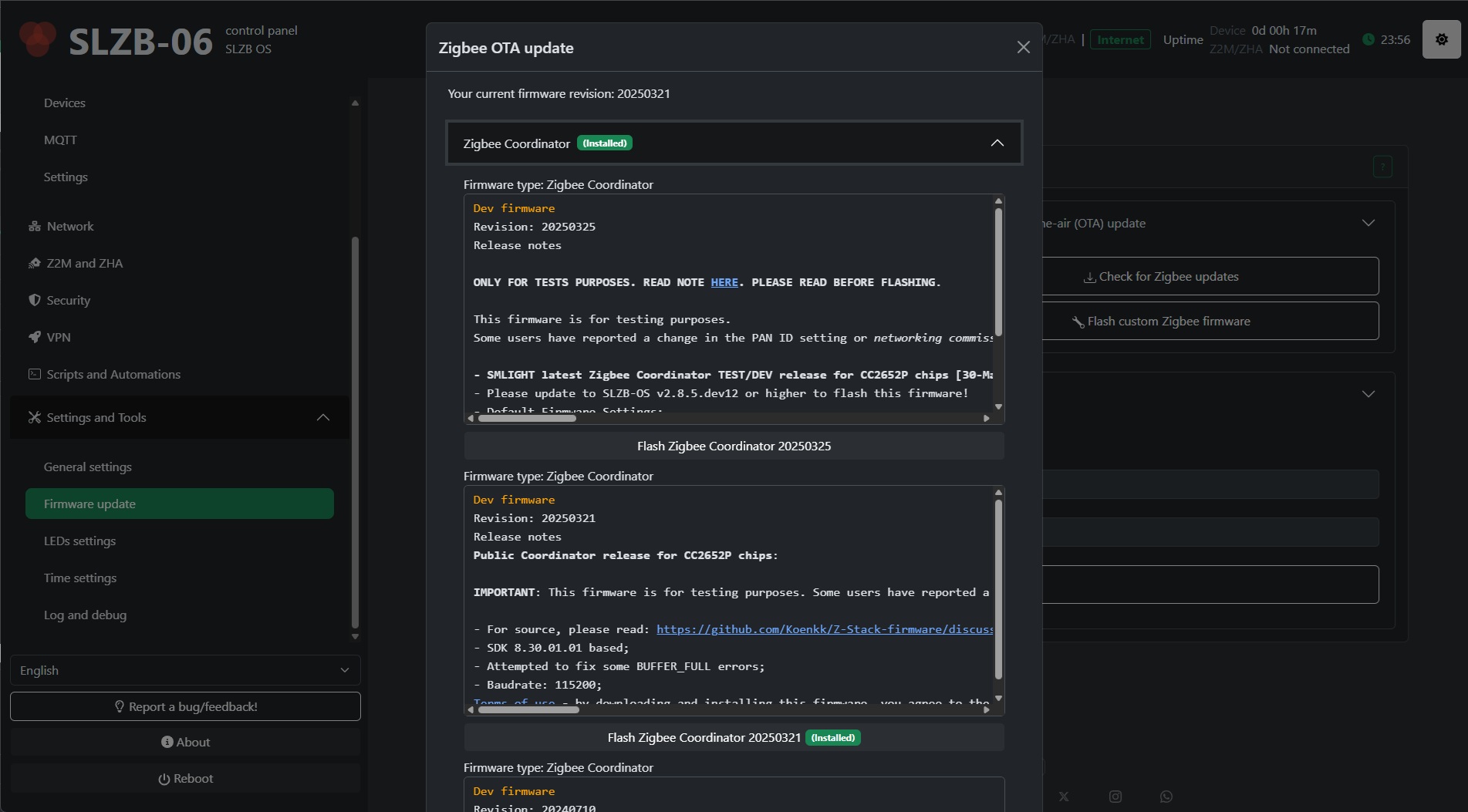 Additionally, SMLIGHT provides an official open-source firmware for the core, which serves as a lightweight alternative to SLZB-OS. While it doesn’t offer the full feature set and polish of SLZB-OS, it’s a great starting point for customization and community contributions.