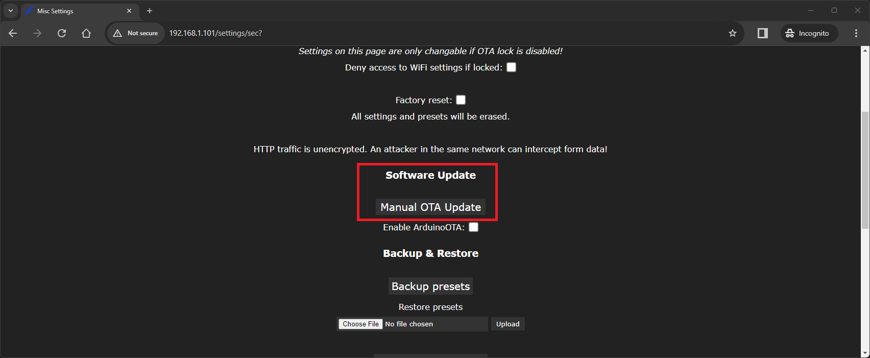 - Click on Manual OTA Update;